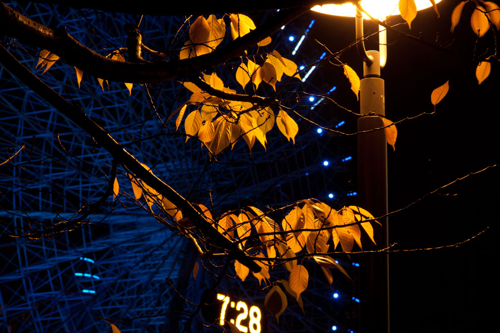 電灯のそばの黄葉した葉っぱがここは暖かいね~って身を寄せ合ってる感じにみえたのでパチリ。